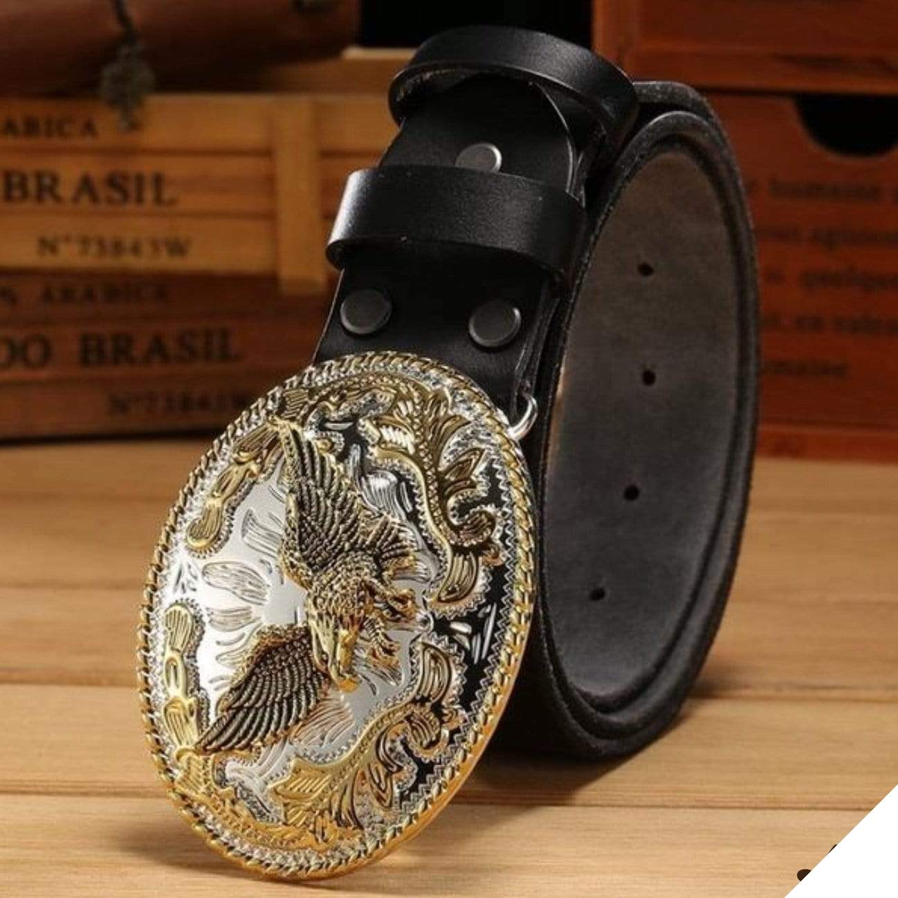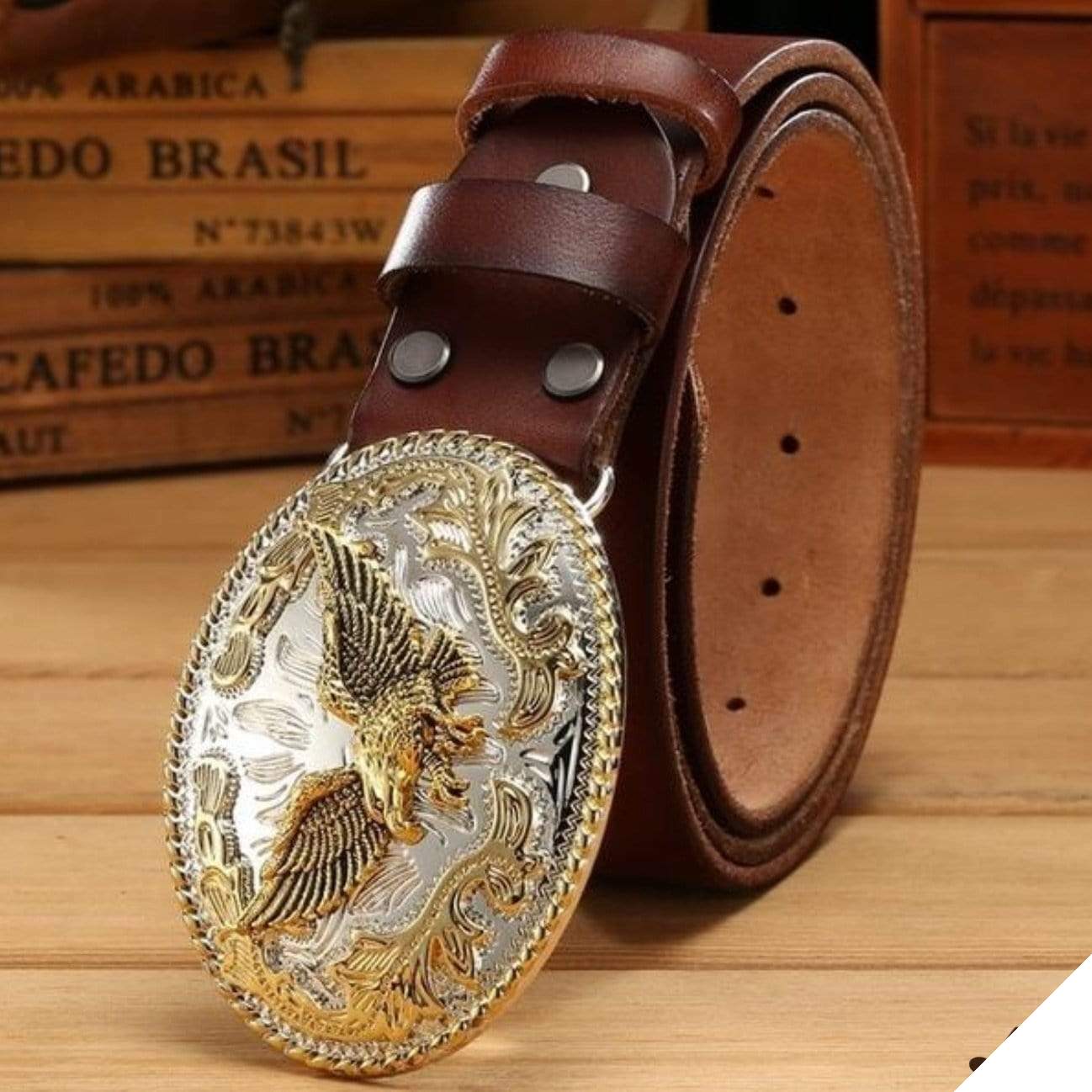 Cowboy bältet med spänne från L’Aigle Doré har en unik och detaljerad design av kungsfalken. Dess unika och förfinade finish påminner om världen av cowboys.