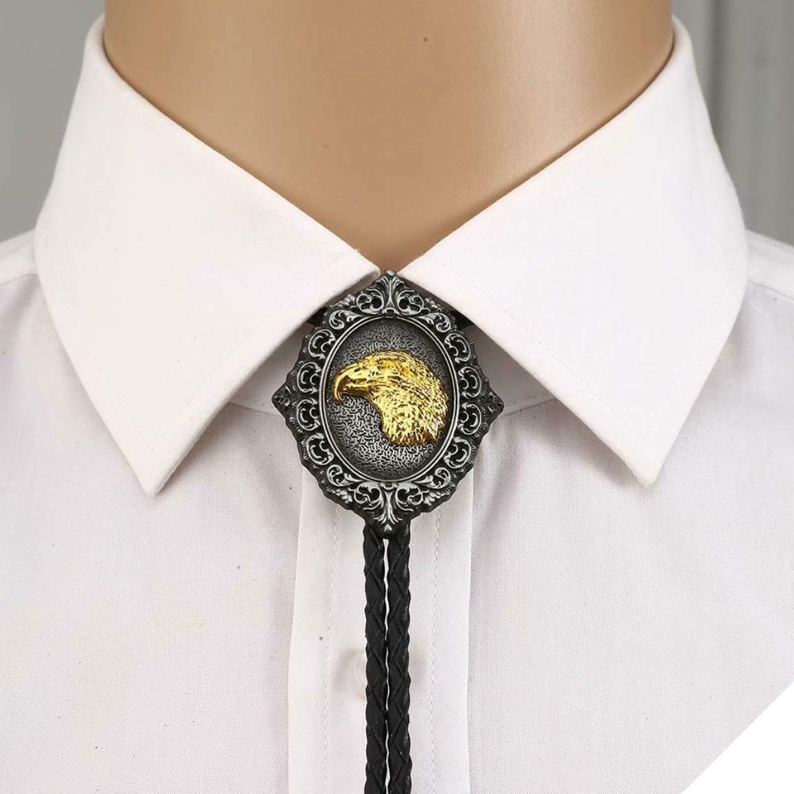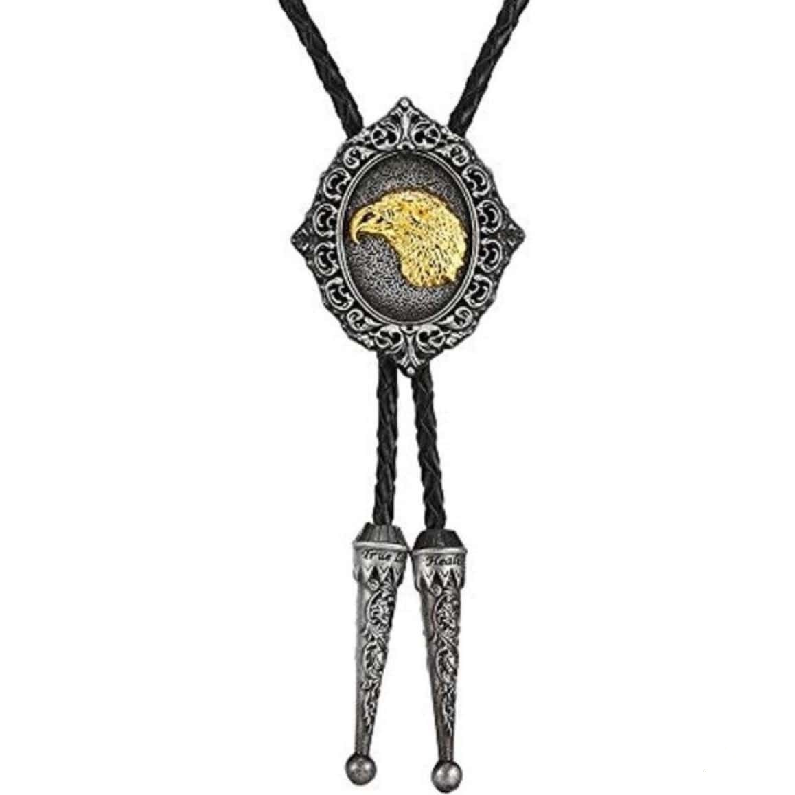 Bolo tie örn är en detaljerad miniatyrreproduktion av den berömda symbolen för USA: den amerikanska örnens kungsörn. Precis och noggrant designad kommer den att glädja alla passionerade cowboys och älskare av vildmarken.