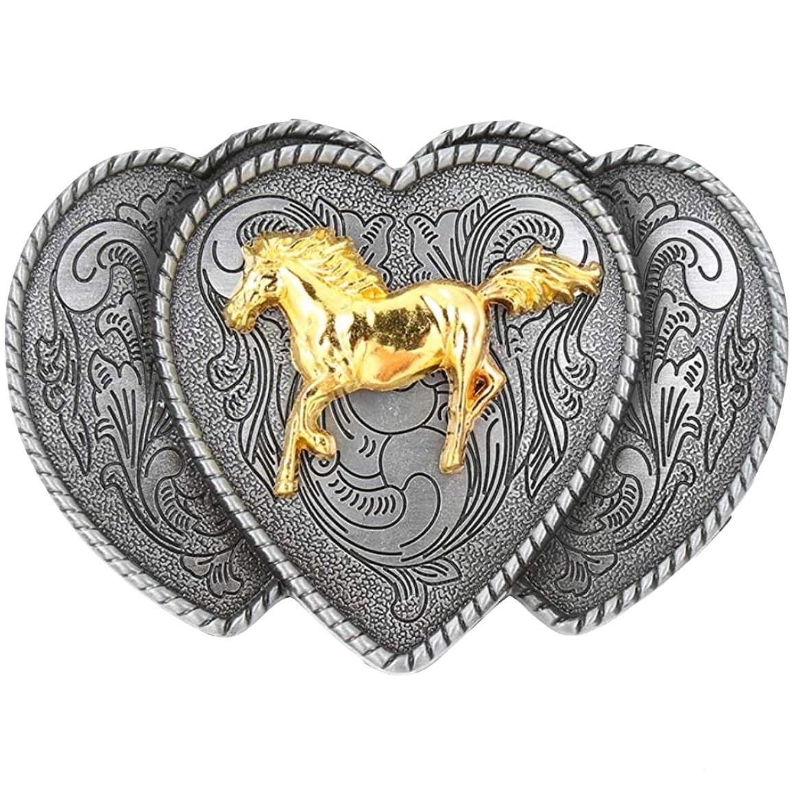 Hästhjärtets bältesbuckla är perfekt för fans av countrymusik och den amerikanska västern. Dess hästmotiv, prydd med noggranna detaljer, kommer inte att gå obemärkt förbi för hästälskare.