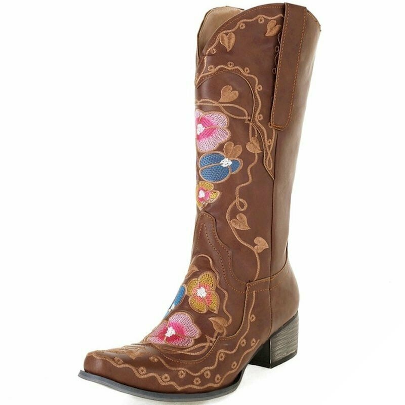 Westernstövlar för kvinnor kommer att glädja fans av country och western. Tillverkade för hand i äkta premiumläder, har de broderade mönster för en bemärkt cowboy-elegans.