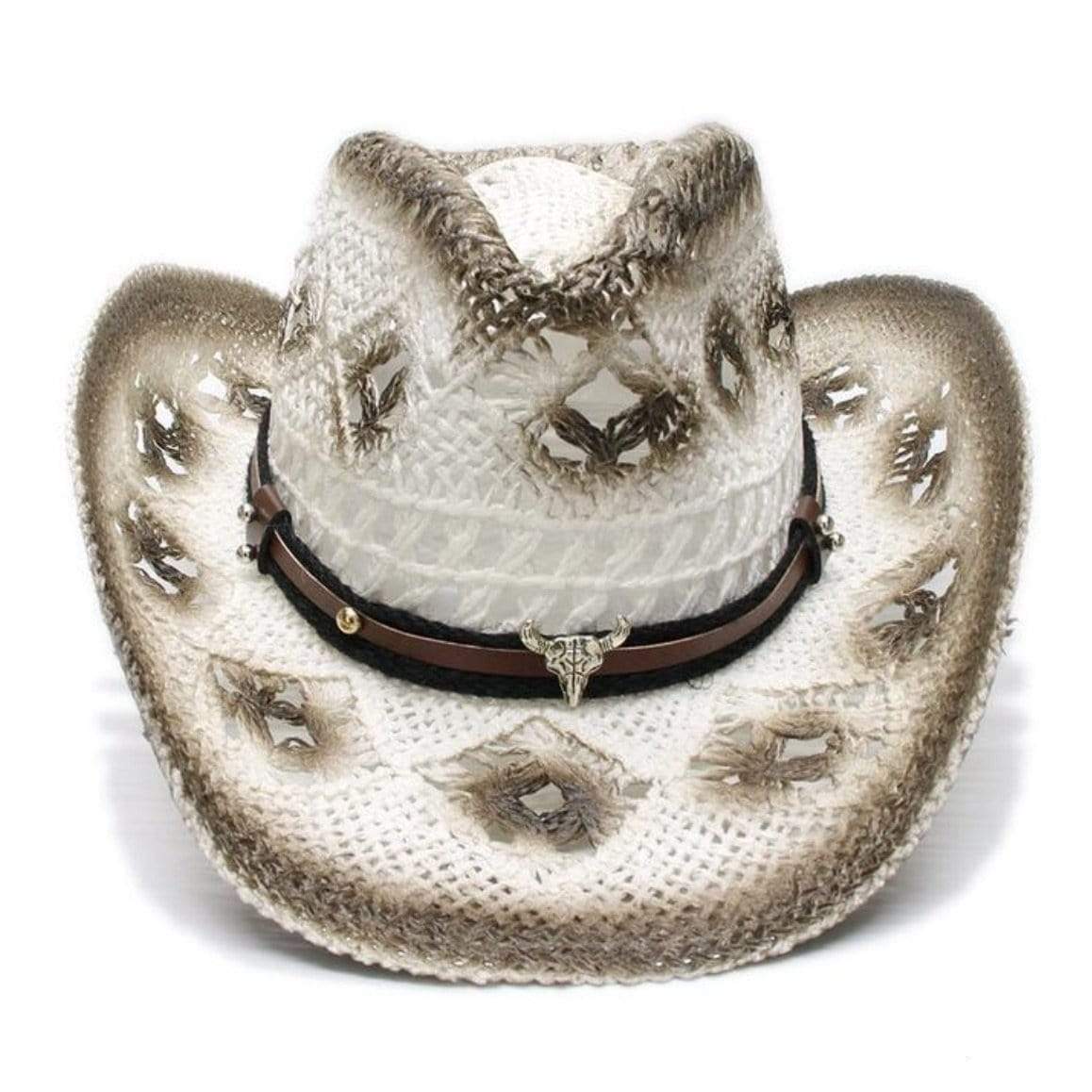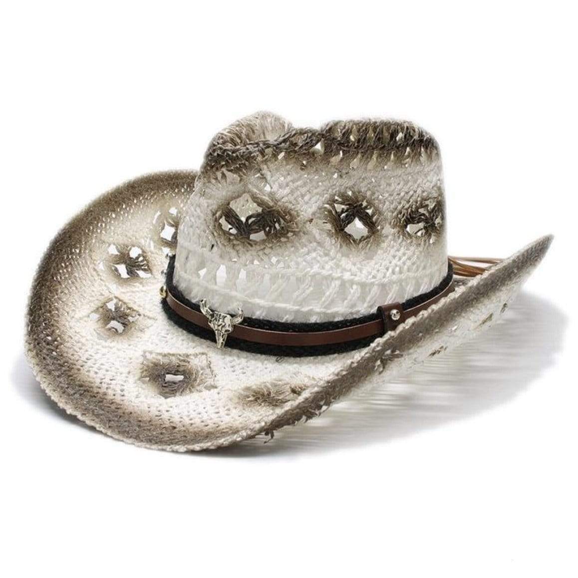 Cowboystilen är lätt att uttrycka med denna kvinnliga strawhatt. Dess stiliserade effekt och noggranna utförande låter dig kliva in i Vilda Västern med elegans och lätthet.