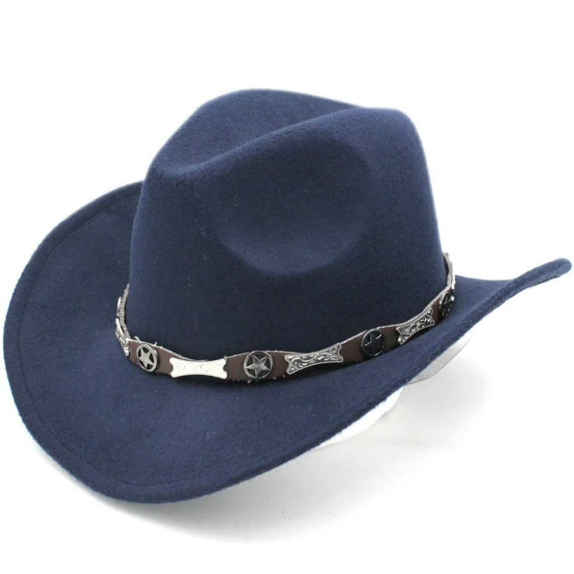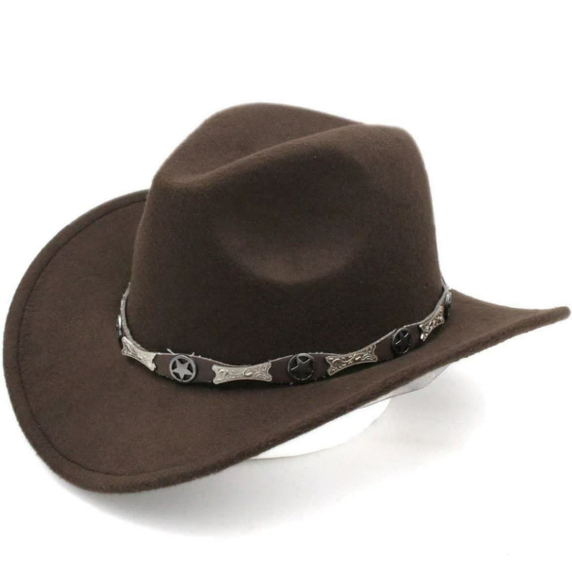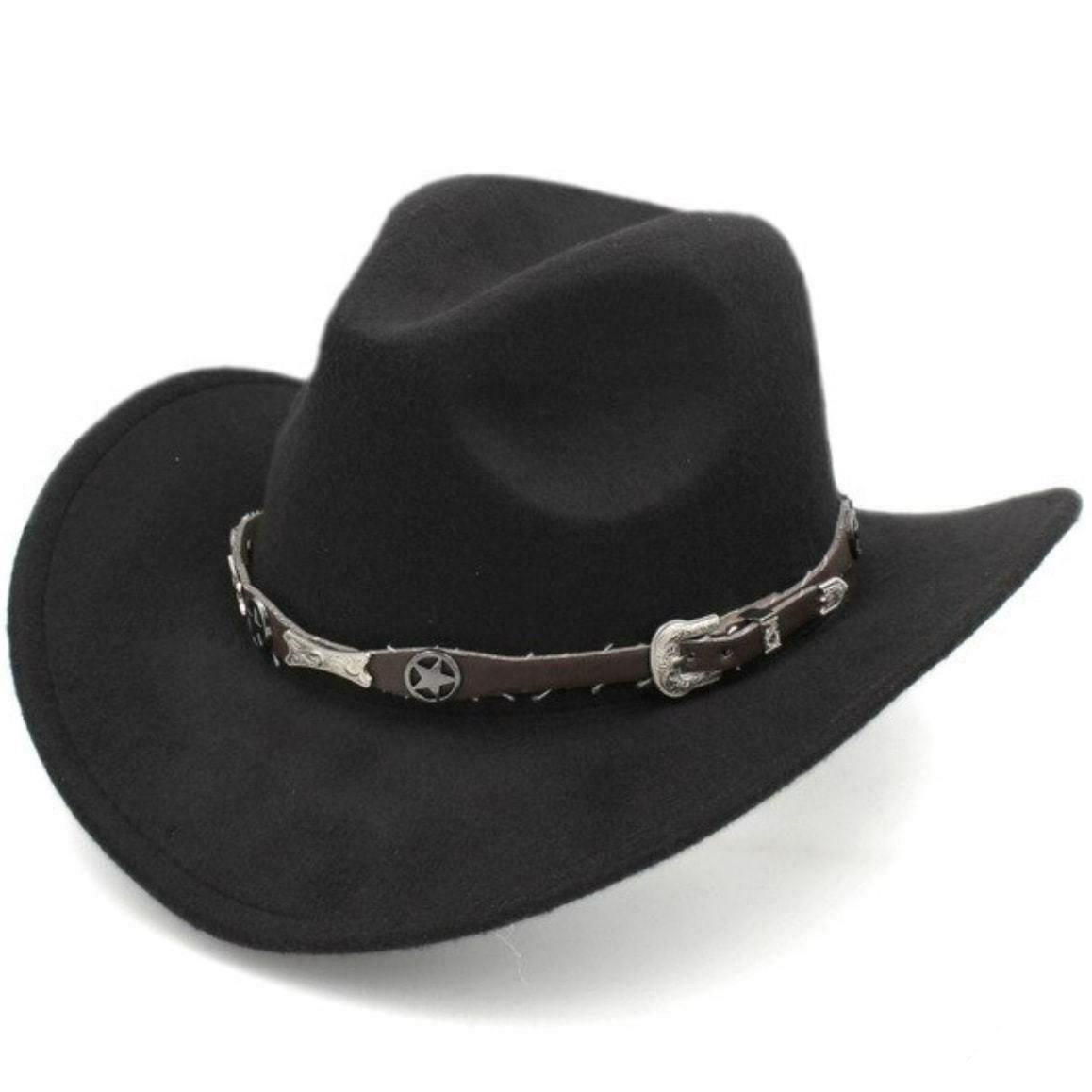 Cowboyhatten i svart filtför herr är en klassisk symbol för western-stilen. Tillverkad av högkvalitativ filtlull, är ett äkta läderband i Far West-stil med och ger hatten en elegant touch som passar perfekt för entusiaster.