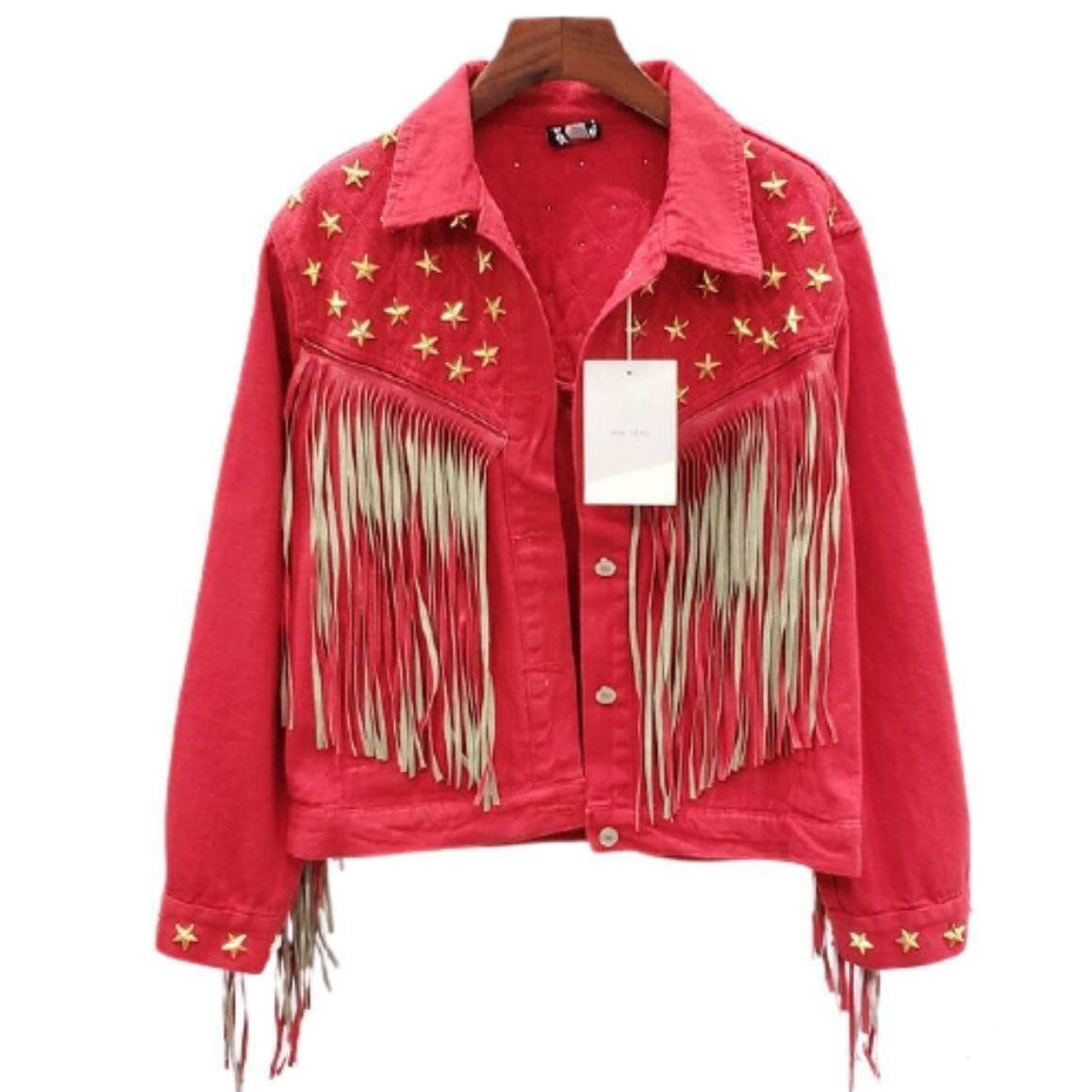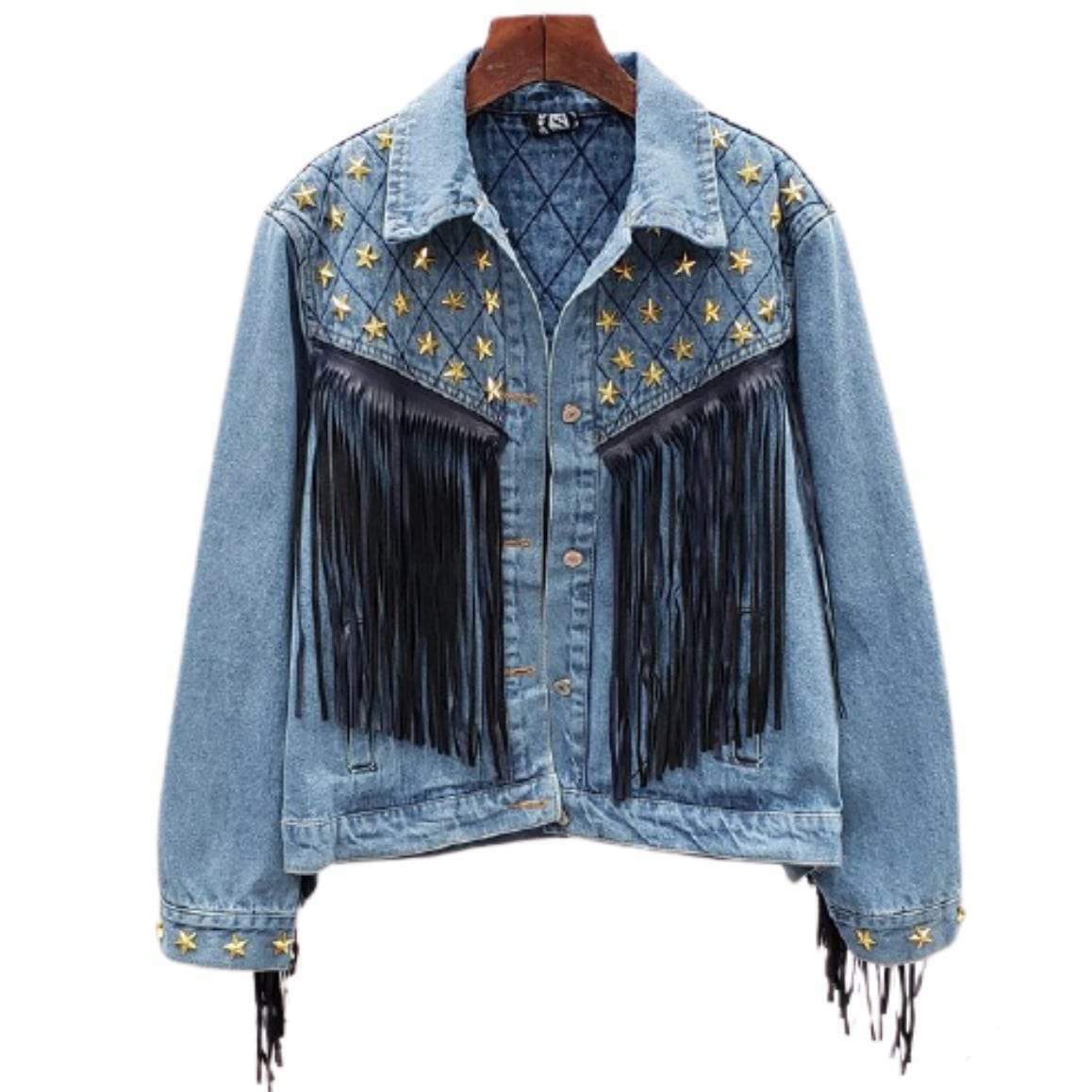 Cowboyjackan för kvinnor är en unik och originell modell designad för country-entusiaster. Med fransar på en karakteristisk jeansyta utmärker den sig genom sin Far West-stil som kombinerar stil och femininitet.