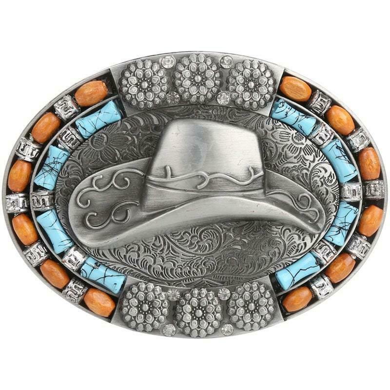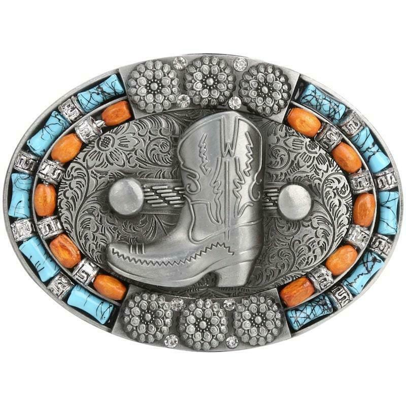 Den stilsäkra westernspännet kommer att förhöja looken för alla cowboyentusiaster. Dess raffinerade blommönster i kombination med turkos färg kommer garanterat att dra uppmärksamhet från alla som älskar den vilda västern.