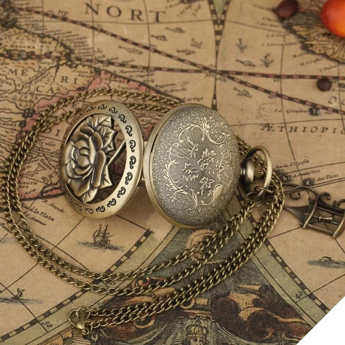 Pocketklocka för kvinnor är en modell som kombinerar charm och feminin countryelegans. Tillverkad av rostfritt stål, utmärker sig detta extraordinära stycke genom sin blommiga design och hjärtskurna gravyr, allt utfört med en otrolig detaljnivå.