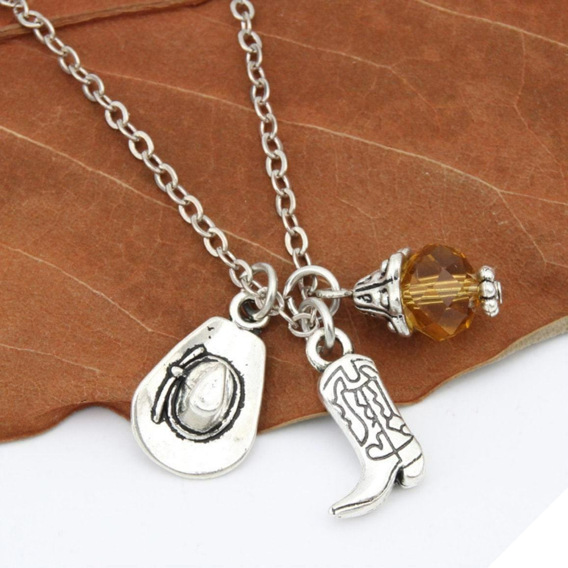 Halsbandet i västerländsk cowboy-stil är en detaljerad reproduktion av de huvudsakliga elementen som omger livet för en cowboy. Detta halsband kommer att glädja älskare av cowboys, country och western-världen.
