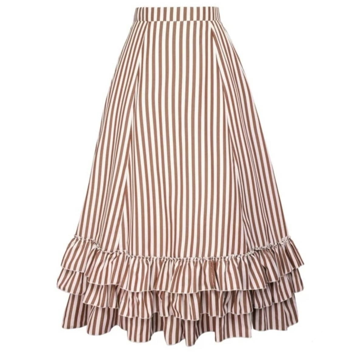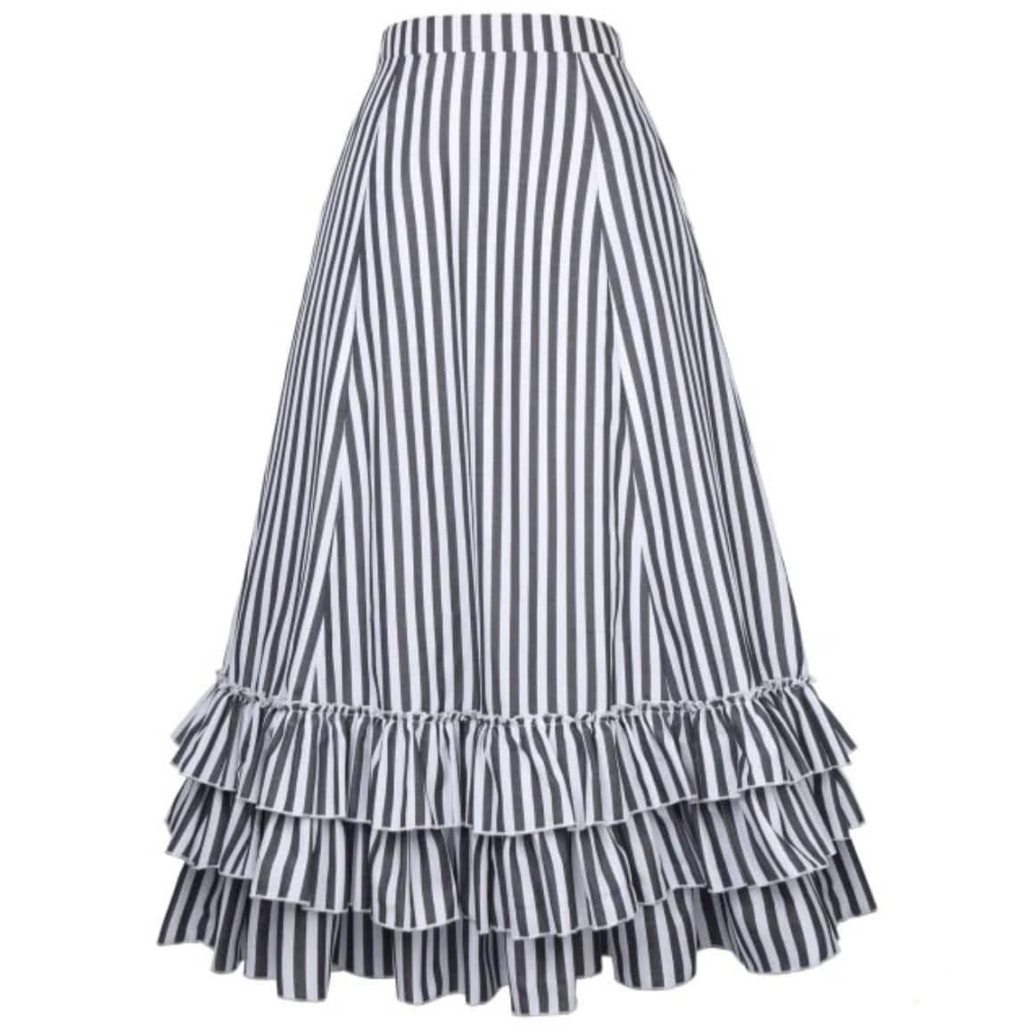 Den långa countrykjolen är en oumbärlig modell för country-western-stilen. Den utmärker sig genom sitt randiga mönster och de karakteristiska volangerna som hör till vilda västern-världen. En ideal kjol för de som älskar countrymusiken.