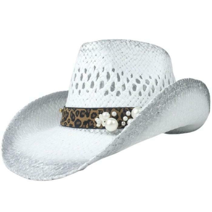 Den vita westernhatten med bourdalou reflekterar charm och harmoni i den ultimata cowgirl-stilen. Tillverkad av halm, ger dess feminina rem en elegant och karaktäristisk kontrast till cowboyhattar.