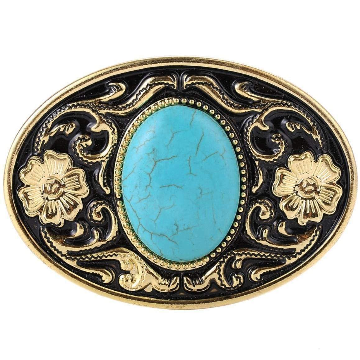 Denna västerninspirerade bältespänne med turkoseffekt är en extraordinär detalj som autentiskt representerar cowboyvärlden. Den är en fantastisk utförande och perfekt för västernentusiaster.