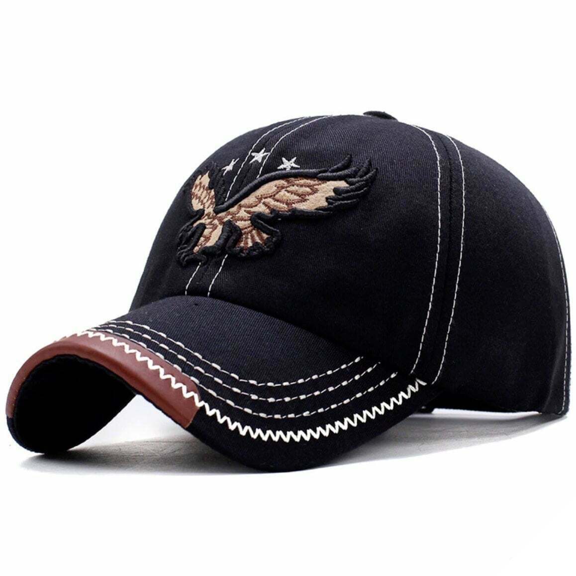 Västernkepsen erbjuder en elegant och karaktäristisk design från Vilda västern. Dess broderade mönster med den amerikanska kungörnen ger en garanterat cowboy-look.