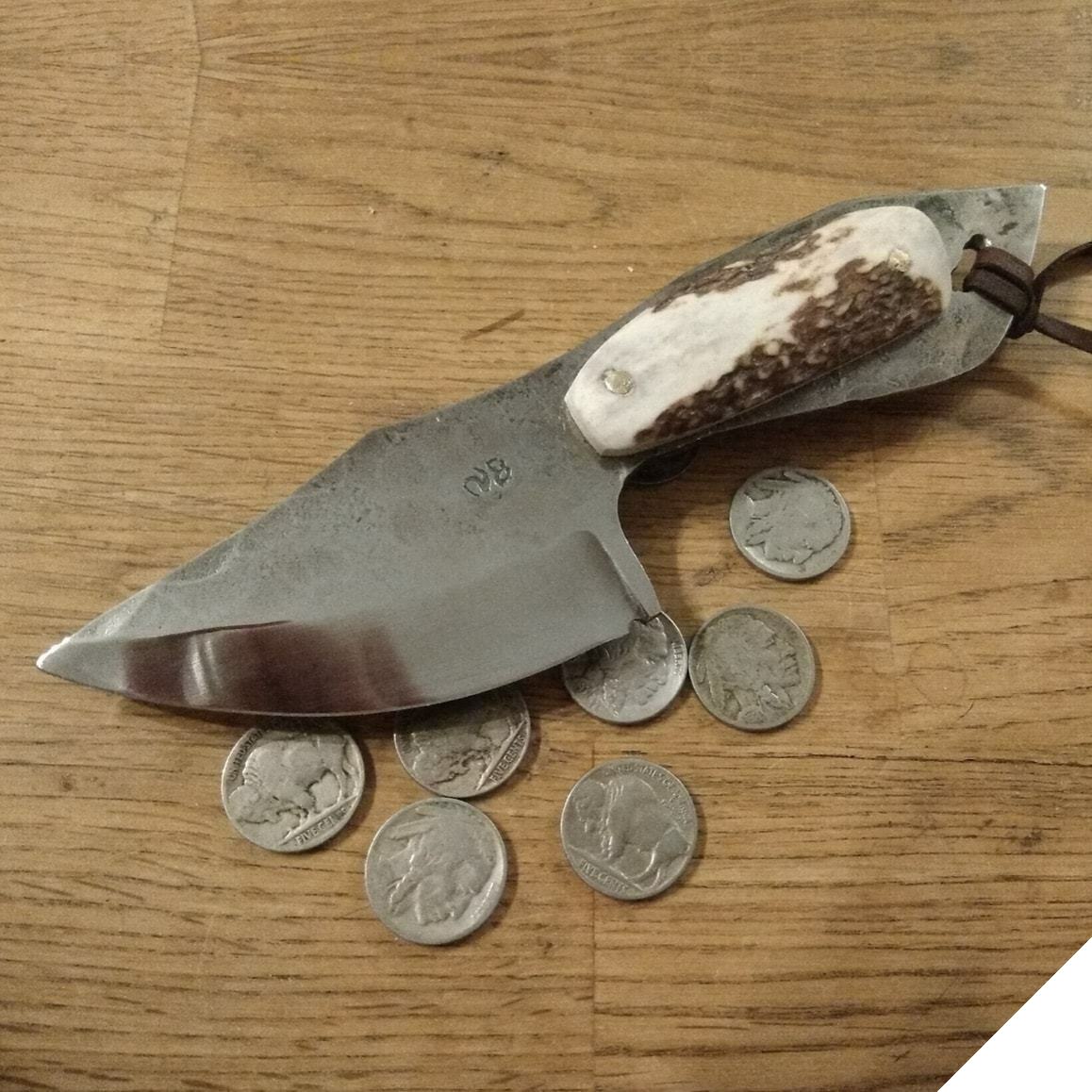 Denna kniv är helt handgjord och bladet är smitt av kolstål XC75.