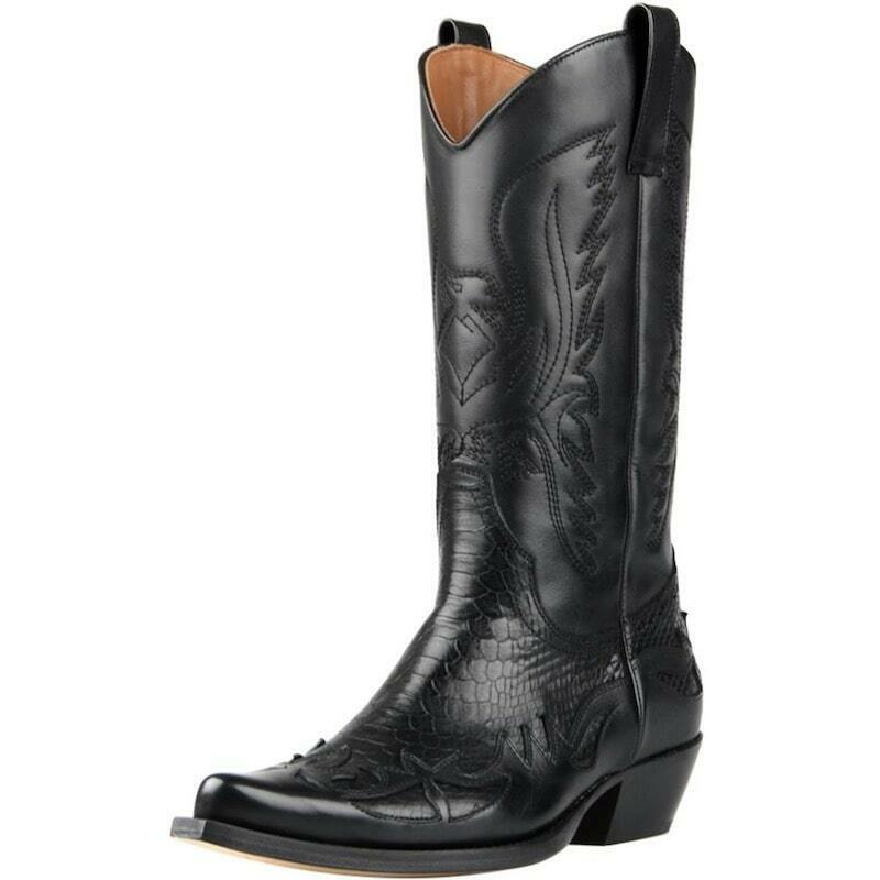 De svarta läder västra stövlarna presenterar med stolthet och elegans den lantliga stilen. Tillverkade för hand av äkta högkvalitativt läder, utmärker de sig genom sina karakteristiska broderier.
